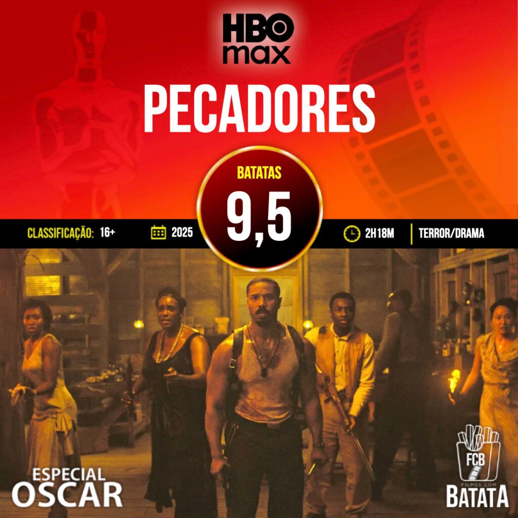 – Análise rápida: Apresenta-se como um filme de horror (e funciona), mas opera em outra chave: o medo nasce menos do choque visual e mais do reconhecimento histórico. A violência não está ali para provocar repulsa gratuita, e sim para materializar feridas antigas que nunca cicatrizaram. Os vampiros que rondam o Delta do Mississippi não são apenas criaturas sobrenaturais; representam estruturas que se alimentam do sangue, do trabalho e da cultura da população negra. Ryan Coogler conduz a narrativa como quem constrói um ritual. A música blues não surge como trilha, mas como linguagem espiritual, elo entre passado, presente e até o futuro; uma ferramenta de enfrentamento contra forças que atravessam gerações e permanecem vivas, como a alma nômade das figuras vampirescas. O bar funciona como espaço físico de encontro e como símbolo de autonomia cultural, algo que o mal tenta constantemente invadir e corromper. Michael B. Jordan sustenta o jogo duplo dos irmãos ao destacar caminhos distintos diante da mesma opressão. Já Delroy Lindo, na humilde opinião desta página, o grande destaque, entrega um personagem moldado pela dor histórica, que sobrevive pela música, pelo humor ferido e por uma coragem que não vem da força, mas da memória. Pecadores usa o horror para falar de identidade, resistência e pertencimento, mostrando que alguns monstros só existem porque a história permitiu que eles sobrevivessem. Não à toa, o mix entre as duas frases mais marcantes do filme tornam o tema ainda mais assustador: “nem que por apenas uma noite, vivemos livres (…) foi a melhor noite da minha vida”.