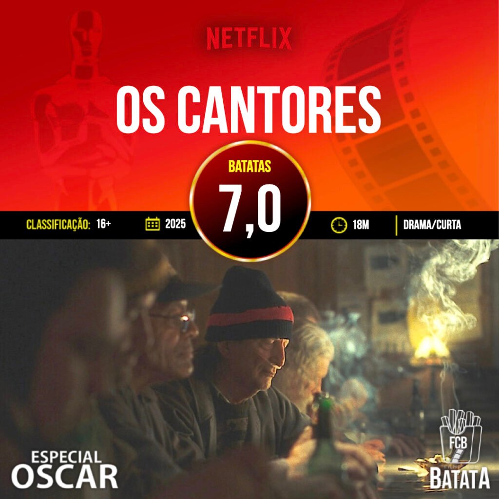 – Análise rápida: Com apenas 18 minutos, parte de uma ideia simples: um bar decadente vira palco de uma competição improvisada que revela talentos e cria laços entre desconhecidos. O curta aposta na música como catalisadora de transformação, sugerindo que a arte reorganiza afetos mesmo em ambientes marcados por frustração. O problema é que a narrativa parece determinada a condensar muitas camadas em pouco tempo. Há um desejo evidente de comentar solidão, fracasso, pertencimento e redenção quase simultaneamente. Esse acúmulo enfraquece a progressão dramática, pois os conflitos surgem e se resolvem sem maturação. Ainda assim, preserva sua linha moral: a ideia de que a expressão artística funciona como ponte entre indivíduos isolados. Quando reduz o discurso e confia apenas na performance musical e nos olhares trocados, encontra seus momentos mais eficazes. É nesse silêncio entre notas que o curta realmente respira.