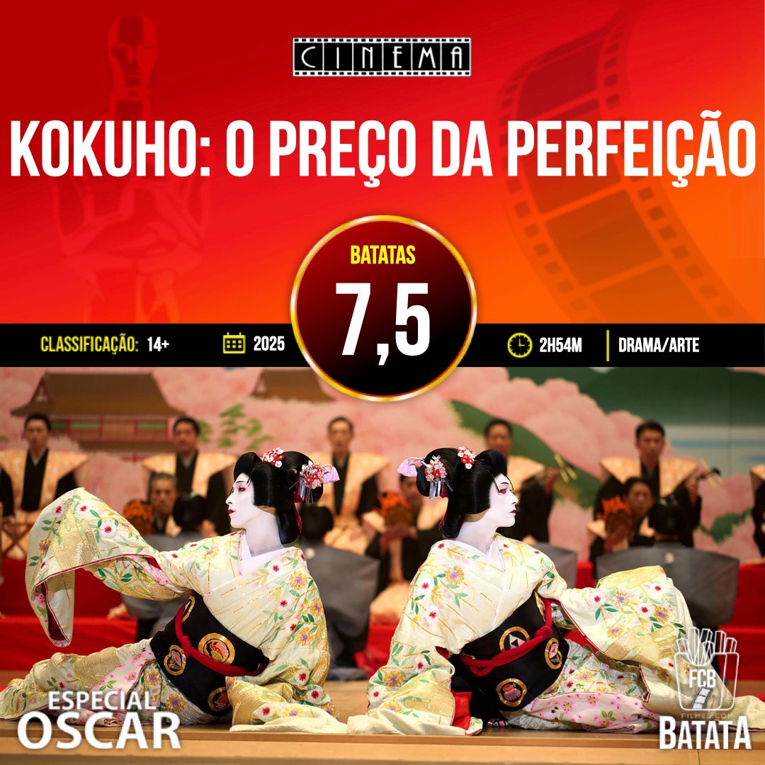 – Sinopse: Após a m0rt3 do pai (chefão da Yakuza), um jovem é acolhido por um mestre do teatro Kabuki. A trama explora sua jornada em busca do título de kokuho, honra reservada aos artistas considerados tesouros nacionais vivos no Japão. Entre tradição, rivalidade e sacrifício, o custo humano por trás da busca pela perfeição artística tem um preço. Por enquanto, nos cinemas.