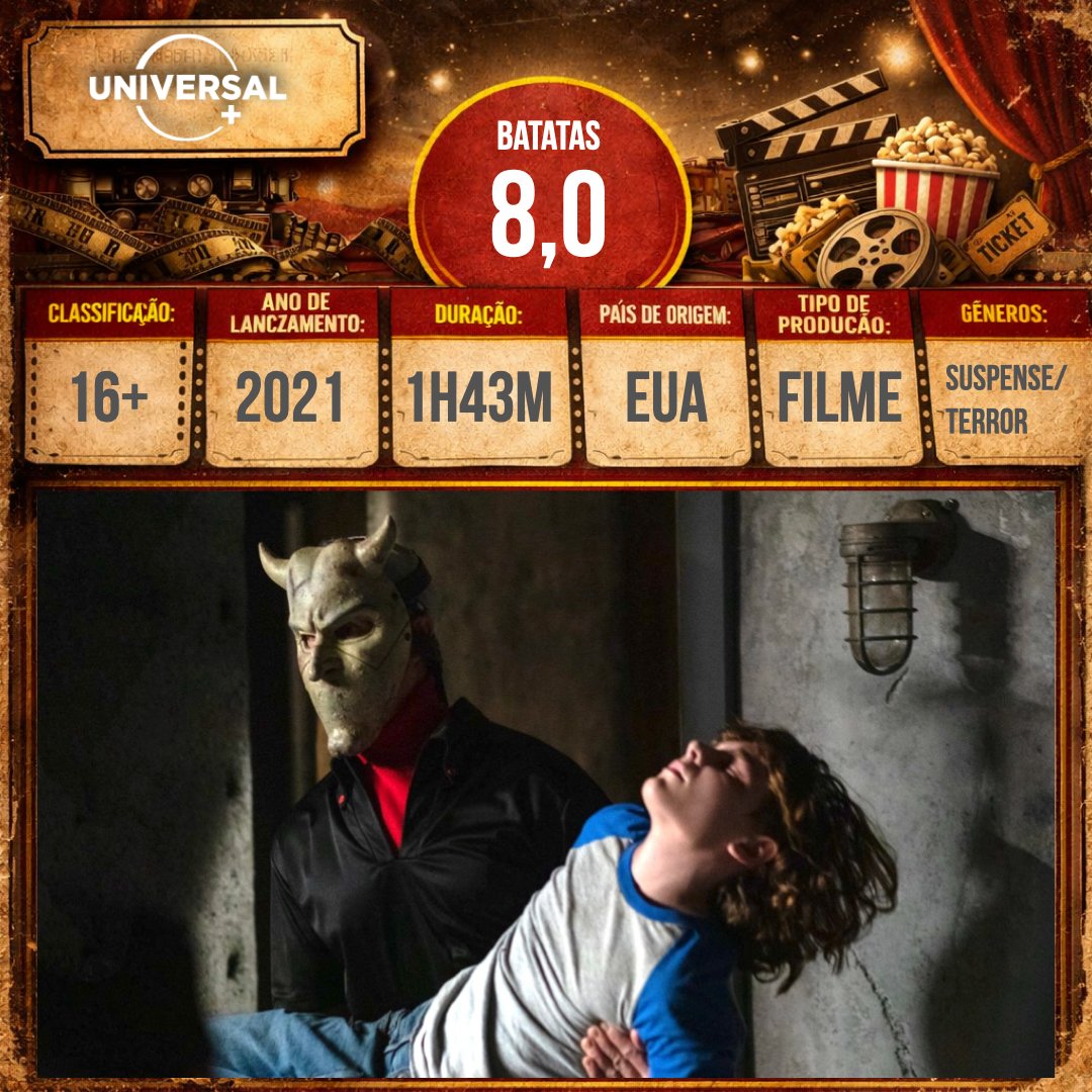 – Sinopse: A sexta vítima de um violento sequestrador de crianças conta com a ajuda de diversas ligações em um telefone misterioso, e com as visões da irmã mais nova, para tentar escapar de um destino cruel. Disponível no Universal+.