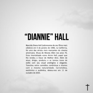 – Análise rápida: É um divisor de águas; Allen reinventa a comédia romântica ao chutar clichês e “contos de fadas” e mostrar o lado humano, e falho, do amor: aqui, tipicamente moderno, feito de encantamento e insegurança, silêncios e sarcasmos, e risadas que escondem medo de solidão. Entre diálogos afiados e situações tragicômicas, o casal tenta entender o que deu certo e o que deu errado no romance, repleto de altos e baixos, inquietações, aflições, inseguranças e contradições. Assim, o cineasta consolida de vez sua assinatura: a mistura de humor, melancolia e reflexões existenciais. O roteiro traz um retrato agridoce das relações e uma observação do comportamento humano, com realismo até em situações que beiram o absurdo. Neuroses cotidianas se transformam em poesia cômica e fazem do humor uma forma de terapia coletiva. A quebra da quarta parede, as digressões e as lembranças misturadas ao presente dão ao filme um ritmo fragmentado. E Diane Keaton é o coração do enredo. Sua protagonista autêntica, desajeitada e absolutamente carismática transcende o roteiro: moderna, livre, insegura e encantadora; o espelho de uma geração que começava a questionar os papéis tradicionais no amor. A química com Allen é natural e seu figurino virou ícone de estilo (o terno masculino, o chapéu-coco e o jeito despreocupado); até hoje define um tipo de feminilidade fora dos padrões. Não é sobre um final feliz, mas sobre o caminho; sobre lembrar com afeto de algo que acabou, e entender que o amor, mesmo quando dá errado, ainda vale a pena ser vivido. Um clássico que envelhece bem por falar do que nunca muda: o desejo de se conectar, mesmo quando a gente não se entende nem a si mesmo.