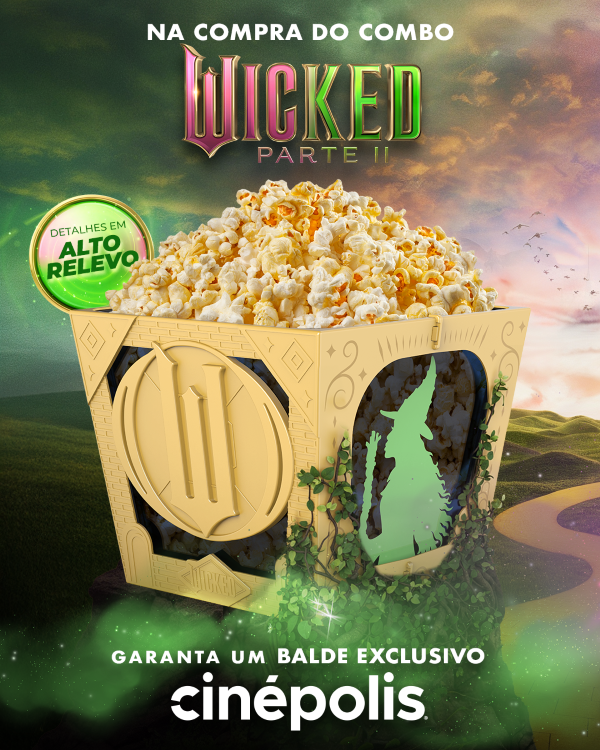 A Cinépolis, maior operadora de cinemas da América Latina, iniciou a pré-venda de ingressos para Wicked 2 e acaba de lançar um combo exclusivo que promete encantar os fãs do filme. Para celebrar a chegada da aguardada sequência de um dos musicais mais famosos do mundo, a rede lança um balde de pipoca colecionável com design inspirado no universo mágico de Oz.