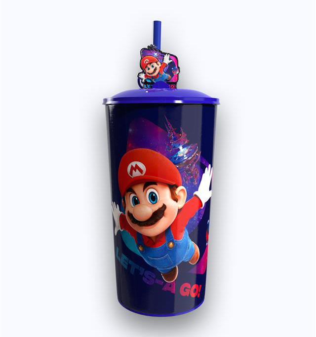 Além do balde, a rede também disponibiliza o copo temático do Mario, que acompanha um chaveiro em metal do personagem, reforçando o apelo colecionável do item.