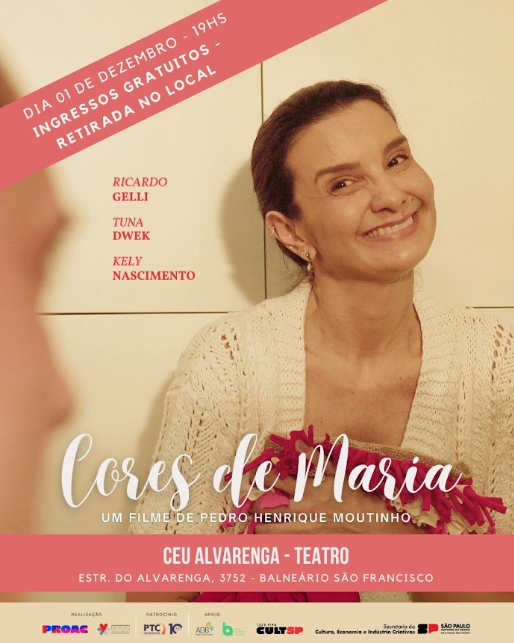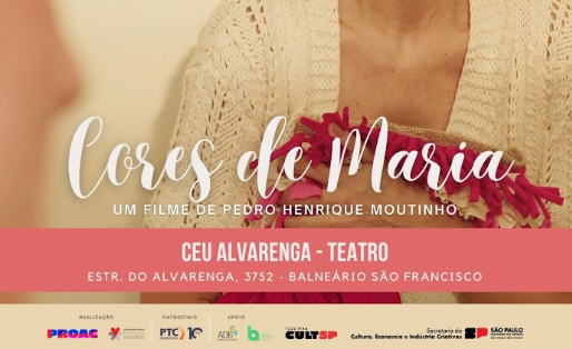O curta-metragem Cores de Maria, produção do Instituto Renascimento, terá uma nova exibição gratuita nesta segunda-feira (01), às 19h, no Teatro do CEU Alvarenga, localizado na Estrada do Alvarenga, 3752 – Balneário São Francisco, São Paulo. Após a sessão, o público será convidado para uma conversa sobre os temas abordados no filme. Os ingressos são gratuitos e poderão ser retirados no local, antes da sessão.