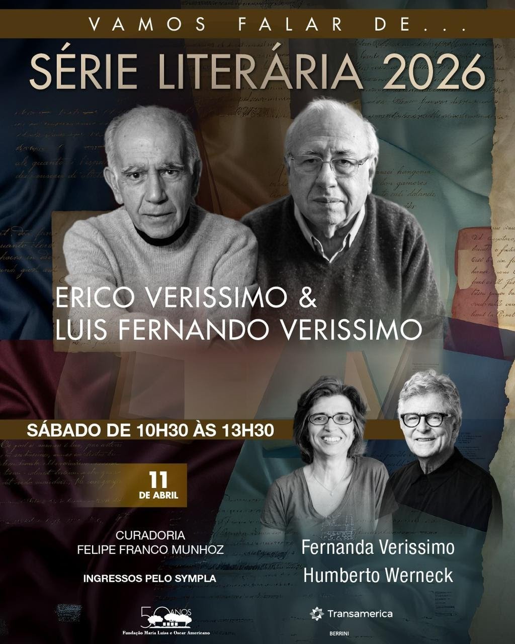 No próximo sábado, 11 de abril, das 10h30 às 13h30, a Fundação Maria Luisa e Oscar Americano, localizada no bairro do Morumbi, em São Paulo, promove um encontro dedicado à produção literária de dois nomes fundamentais da literatura brasileira: Erico Verissimo e Luis Fernando Verissimo. A atividade integra a abertura da temporada de 2026 da Série Literária da instituição e contará com a participação da jornalista, roteirista e tradutora Fernanda Verissimo, neta de Erico e filha de Luis Fernando, e do jornalista e escritor Humberto Werneck.