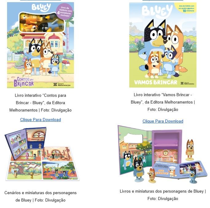 Os dois primeiros lançamentos, Vamos Brincar e Contos para Brincar, chegam em novembro, aquecendo o varejo para a temporada de Natal. Além das divertidas histórias de Bluey e sua família, as publicações trazem uma surpresa especial: miniaturas dos personagens mais queridos da TV.