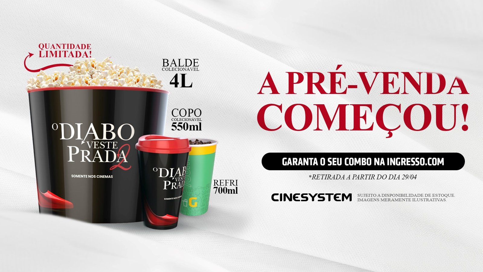 Vinte anos depois de Miranda Priestly entrar para a história do cinema como uma das vilãs mais icônicas já criadas, ela está de volta. O Diabo Veste Prada 2 chega aos multiplex da Cinesystem com pré-estreia marcada para 29 de abril (quarta) e estreia oficial no dia 30 (quinta). Para comemorar mais esse feito no cinema mundial, a Rede já abriu a pré-venda dos ingressos e do souvenir exclusivo na Ingresso.com em todas as unidades, de norte a sul do país.