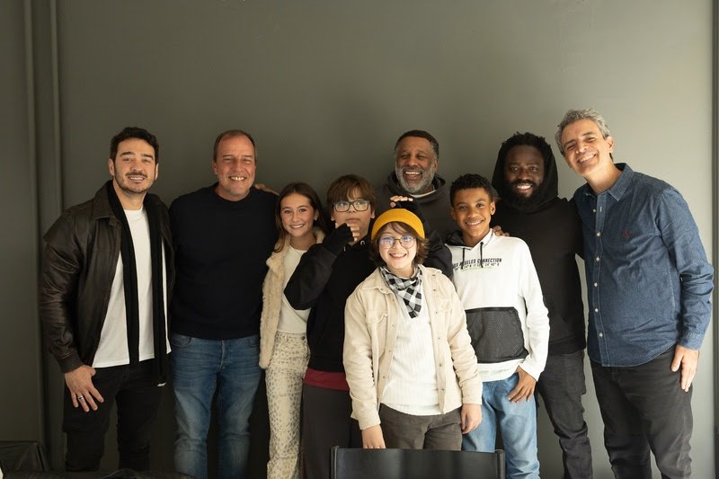 Marcos Veras, Lipe Binder, Bela Alelaf, Francisco Galvão, Breno Kaneto, Ailton Graça, Samuel Estevam, Douglas Silva e Tiago Mello na leitura de roteiro de ‘O Gênio do Crime’ (Crédito: Andréia Machado)