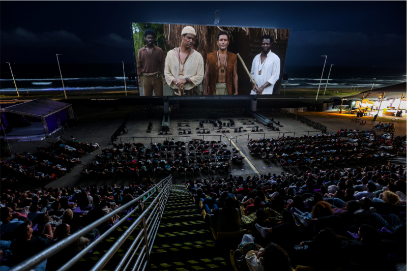 Exibição de ‘Malês’ na maior tela de cinema a céu aberto do mundo, com 325m² (Fotos: Fernando Souza)Apresentado pelo Ministério da Cultura e pelo Nubank, o Open Air Brasil chega à sua segunda semana em Salvador depois de sessões esgotadas, pré-estreia do filme “Malês”, presenças ilustres, muita pipoca, diversão e um público incrível de 10.500 pessoas. Com a maior tela de cinema a céu aberto do mundo (com a altura de um prédio de quatro andares e do tamanho de uma quadra de tênis – 325m²), o evento é uma experiência completa para toda a família e apresenta shows, atrações gastronômicas e recreação infantil, além de filmes que agradam a diversos públicos.