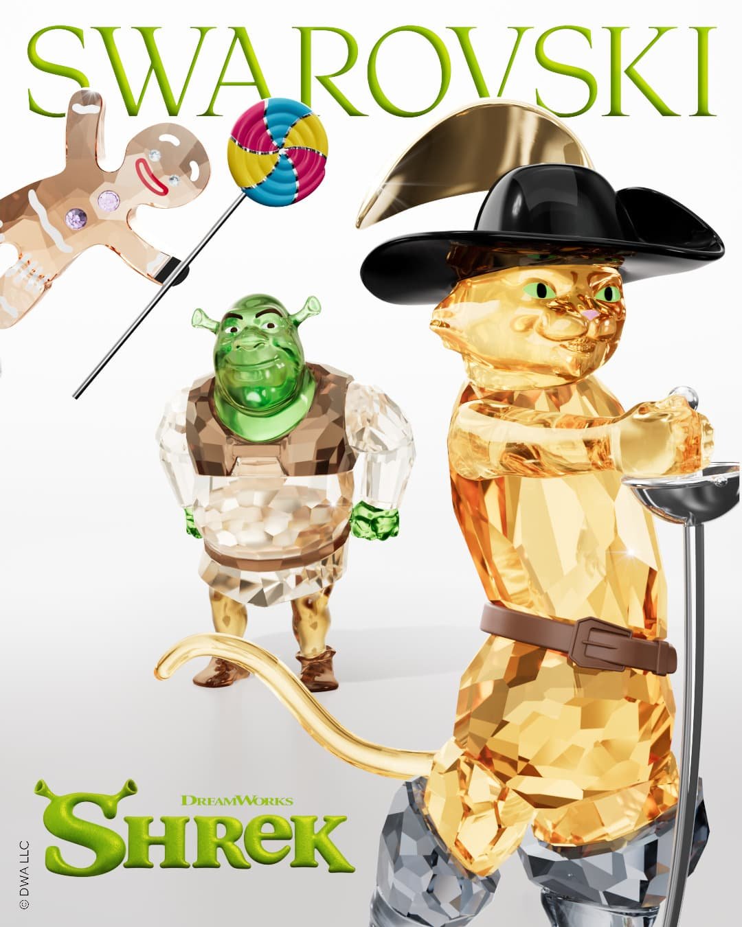 Em colaboração com a Universal Products & Experiences, a Swarovski lança a nova coleção DreamWorks Animation Shrek Home. Personagens icônicos dos filmes Shrek são reinterpretados como esculturas em cristal, incluindo Shrek, Fiona, Gato de Botas, Burro e o Homem-Biscoito, carinhosamente conhecido como “Gingy”. Combinando o savoir-faire característico da Swarovski com a maestria narrativa da DreamWorks Animation, essas peças lapidadas com precisão refletem a magia do Reino de Tão Tão Distante.