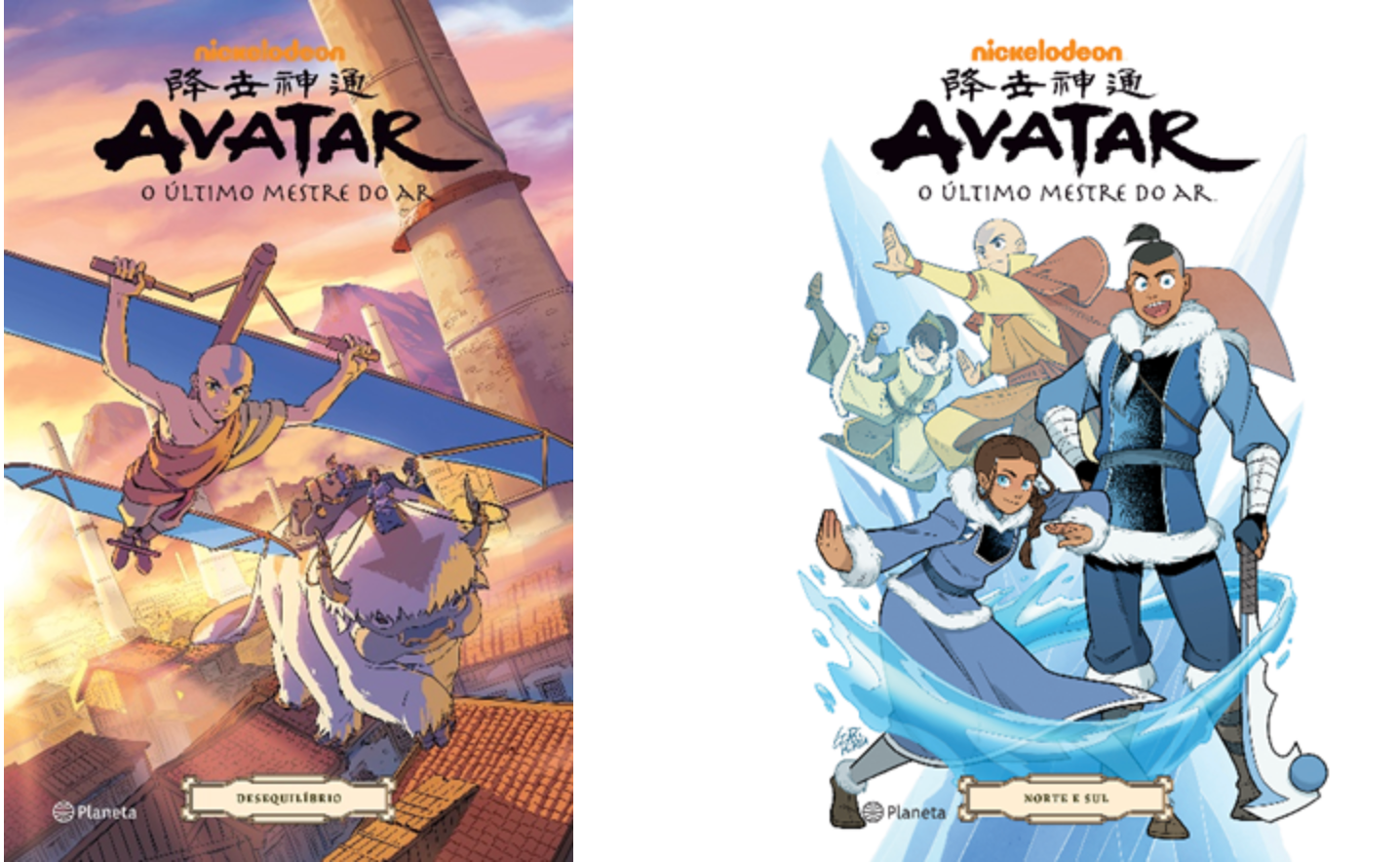 Desequilíbrio e Norte e Sul dão continuidade à história de Aang e amigos após a série animada, explorando temas de poder, identidade e transformação no mundo das quatro nações (Imagens: Editora Planeta)